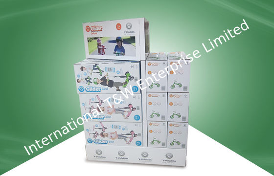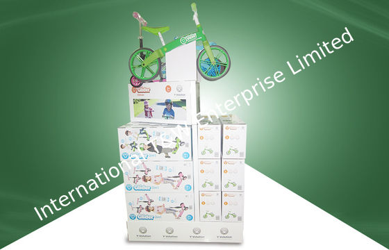 Exhibición de la cartulina del POP del papel de la demostración de cuatro caras para las bicis de los niños que venden a Costco