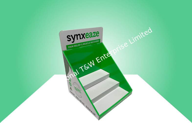 Exhibición contraria de la cartulina de tres gradas/unidad de visualización contraria para vender la medicina del alivio del dolor