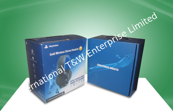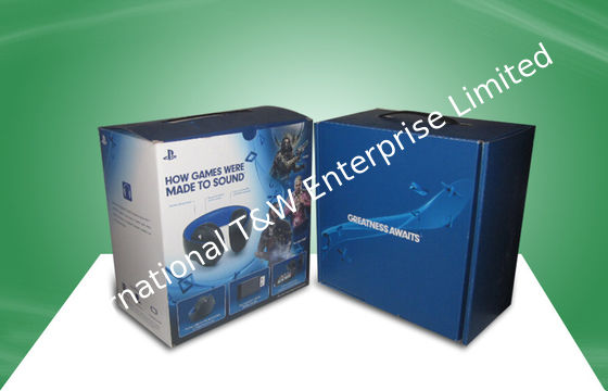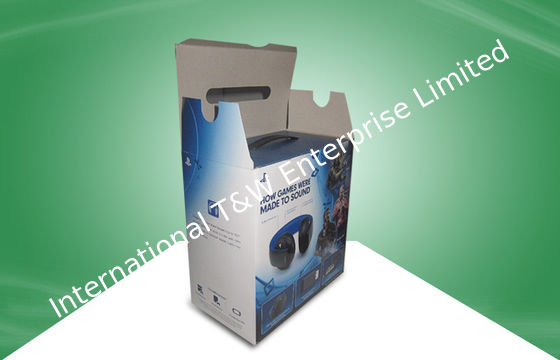 Cajas de empaquetado fuertes azules del papel acanalado con la manija plástica para el oído - teléfono